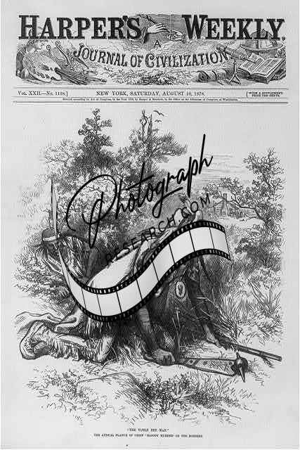 The Noble Red Man,Indians stalking Settlers Cabin,Bloody Murder,1878,Harper's
