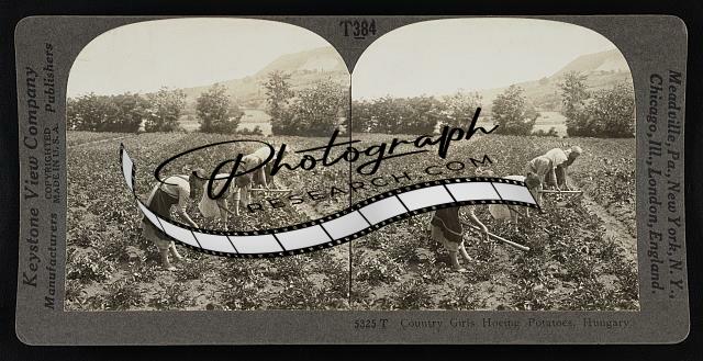 Country girls hoeing potatoes,Hungary