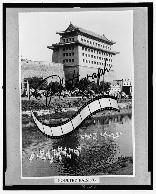Poultry raising,ducks in canal outside walls of Beijing,China,carts & wagons