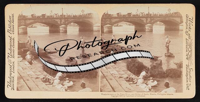 Washerwomen at the Pasig River, and Bridge of Spain, Manila, Philippine Islands