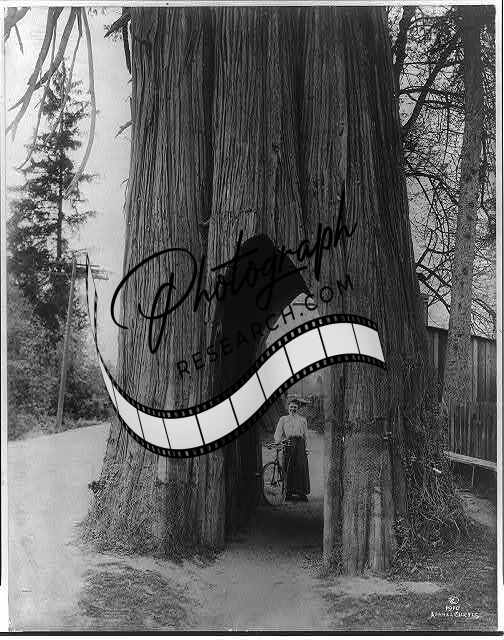 The famous bicycle tree of Snohomish Washington,cut out part of cedar tree,c1911