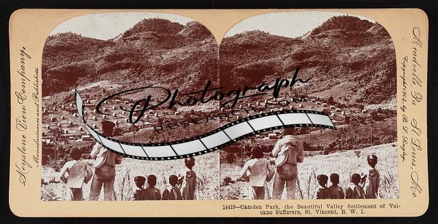 A plantation, native workers, and refugees from La Souffriere's eruptions - betw