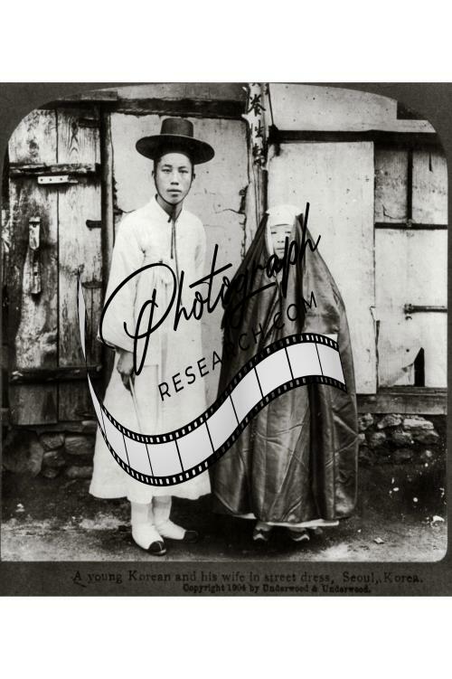 A young Korean,his wife in street dress,Seoul,Korea,c1904