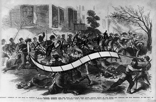 [[Lieutenant Tompkins at the head of Company B, U.S. Dragoons, charging into the