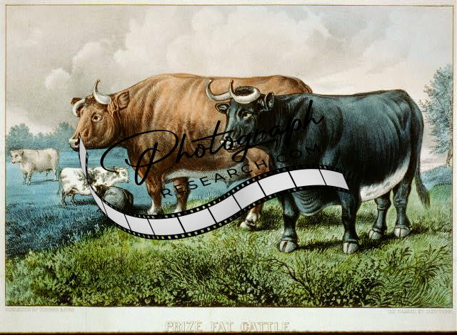 Prize fat cattle,1856-1907,Currier & Ives,Photograph,livestock,field of grass