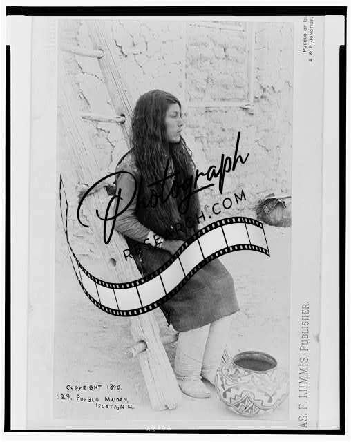 Pueblo Maiden,Isleta,N.M.,seated on ladder,pot,c1890