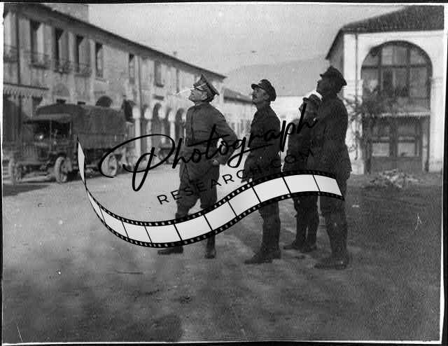 Col. Perkins,Major Lowell,men watching airplanes at the Italian Front,1914-1918