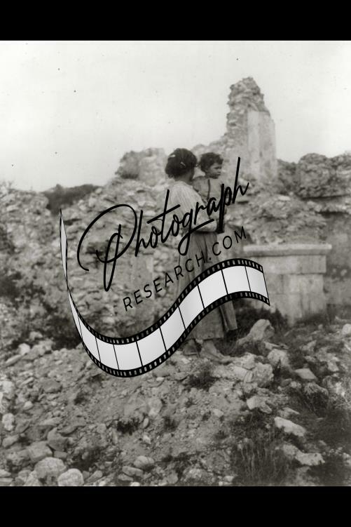 Avezzano,Italy,woman holding child among ruins,1914-1918,WWI,war damage