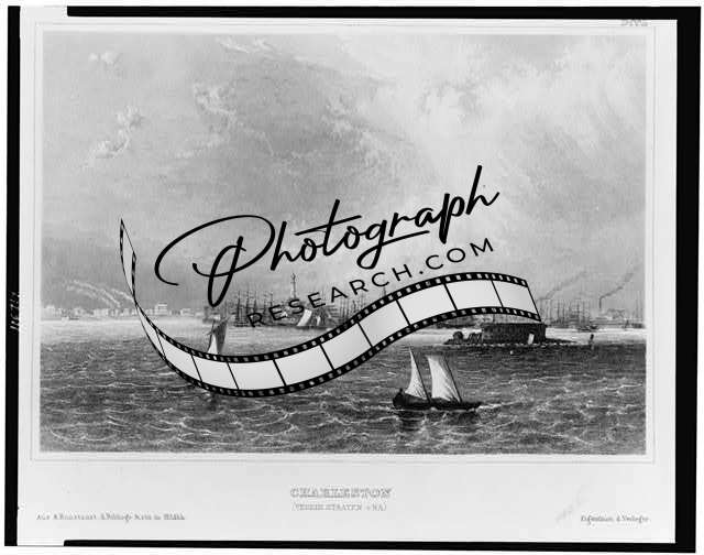 View of Charleston,South Carolina,SC,Charleston Harbor,Boats,Fort Sumter,c1840