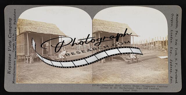 Thatched roof native home - temporary convicts' corral in the background, near o