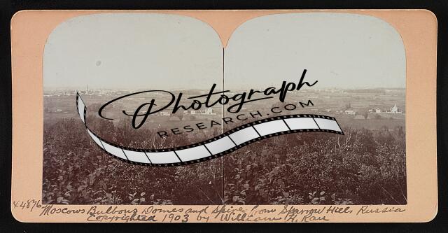 Moscows bulbous domes and spires from sparrow hill, Russia