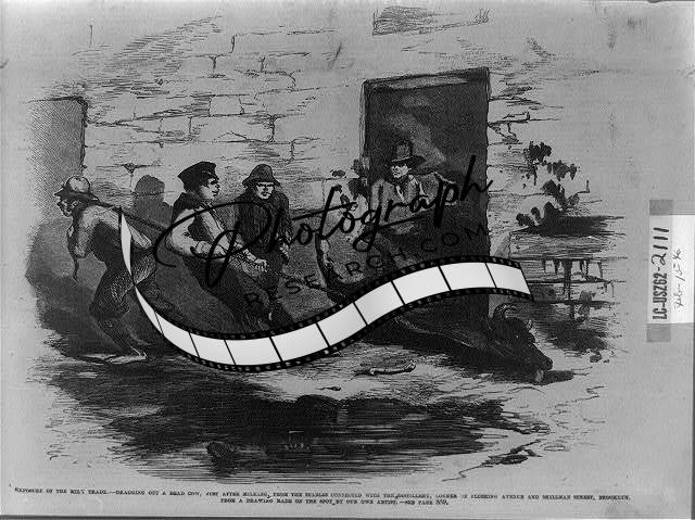 [[Exposure of the milk trade--Dragging out a dead cow, just after milking, from t