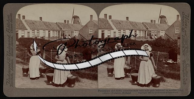 A milkmaid of Goes on her morning rounds--a typical costume and tank, Zeeland, H