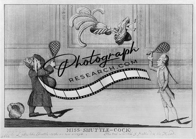 Miss Shuttle Cock,British Cartoon,Game,Raised Battledore,1776