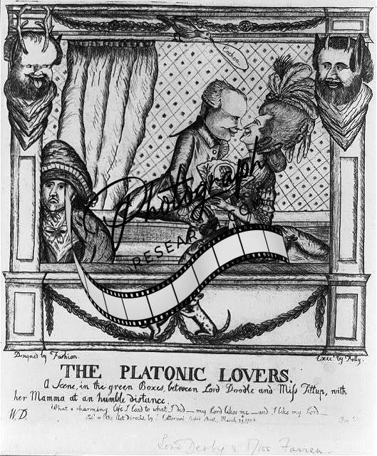 The Platonic Lovers,1784,Lord Derby,Miss Farren,British Cartoon,1784
