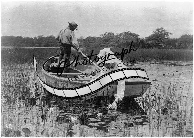 The Lily Gatherer,woman in boat picking lily,rowboat,1892,Rudolf Eickemeyer