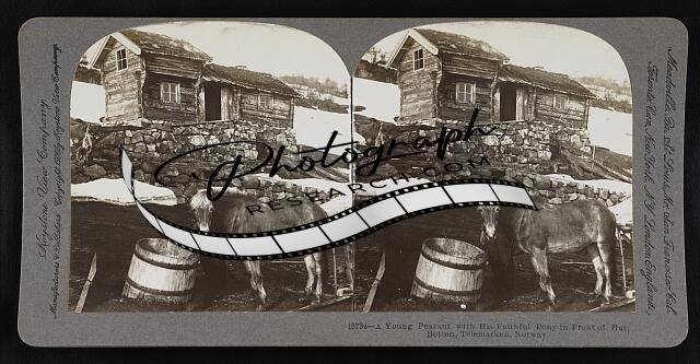 A young peasant with his faithful pony in front of hut, Botten, Telemarken, Norw