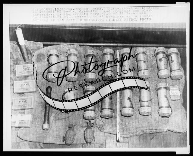 Home-made bombs and hand grenades confiscated from local men in connection with racial bombings, McComb, Mississippi