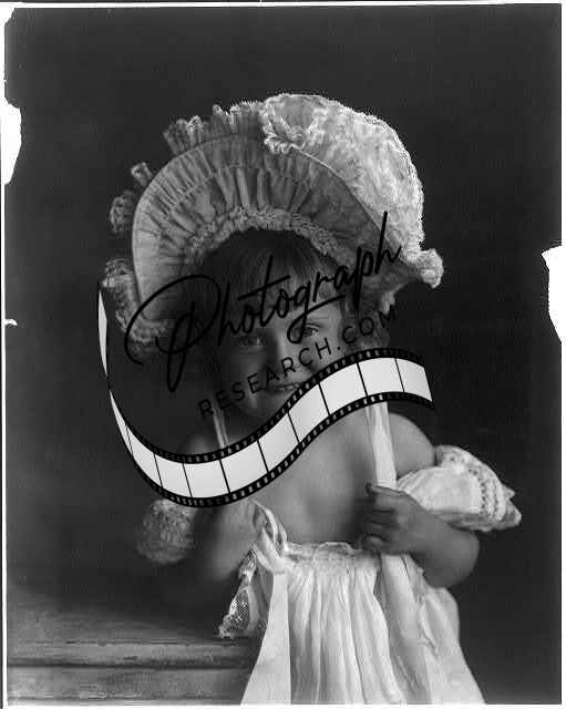 Small girl wearing large bonnet,c1900s,Children,Sentimental,Smiling