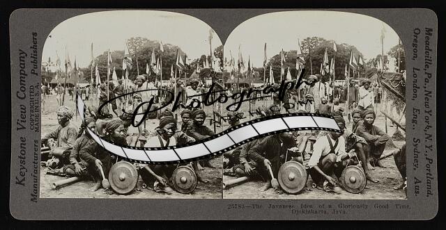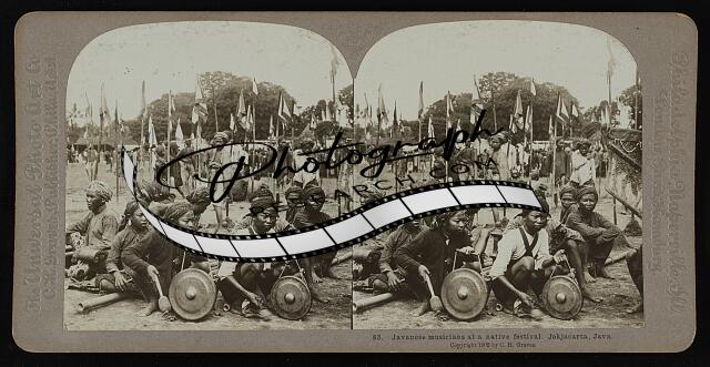 Javanese musicians at a native festival. Jokjacarta, Java