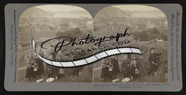 Children gathering wild flowers on the heights above Trondhjem, Norway