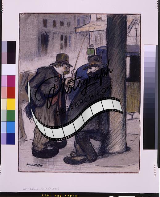 Two coach drivers,France,Coachmen,Sidewalk,French Working Class,1901,Cartoon