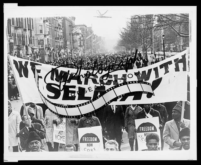 Marchers carrying banner lead way as 15,000 parade in Harlem