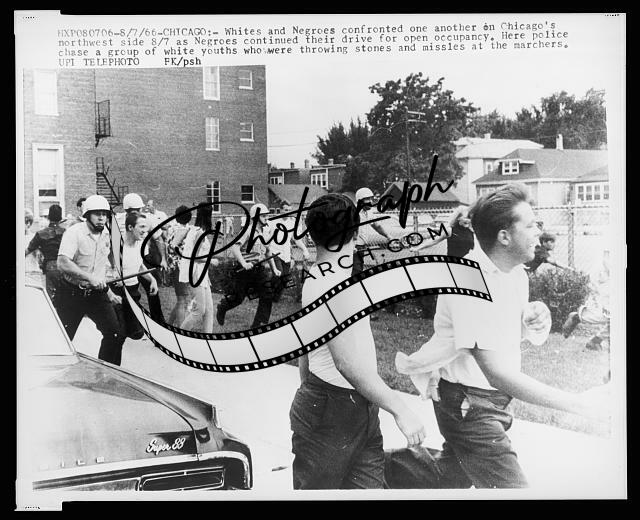 Whites and Negroes confronted one another in Chicago's northwest side ... as Negroes continued their drive for open occupancy