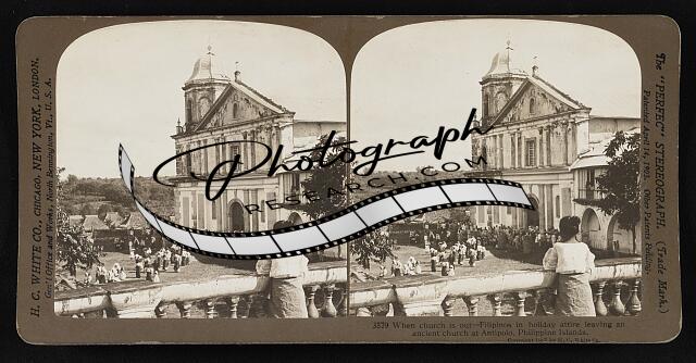 When church is out--Fillipinos in holiday attire leaving an ancient church at An