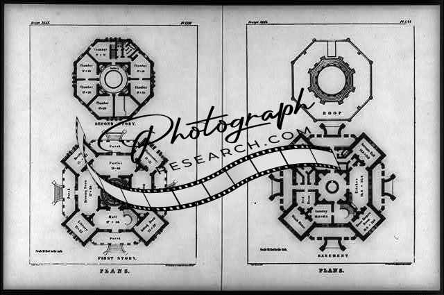 Plans for the first story and basement of an oriental villa