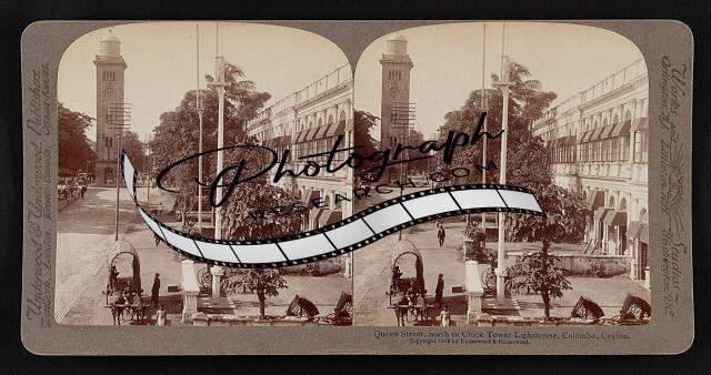 Queen Street, north to clock tower lighthouse, Colombo, Ceylon