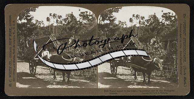 Rapid transit in the tropics - a carabao cart in the Philippine Islands