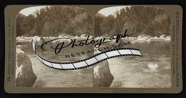 Native boys in a fine fresh water swimming hole beside the bamboo trees,Jamaica
