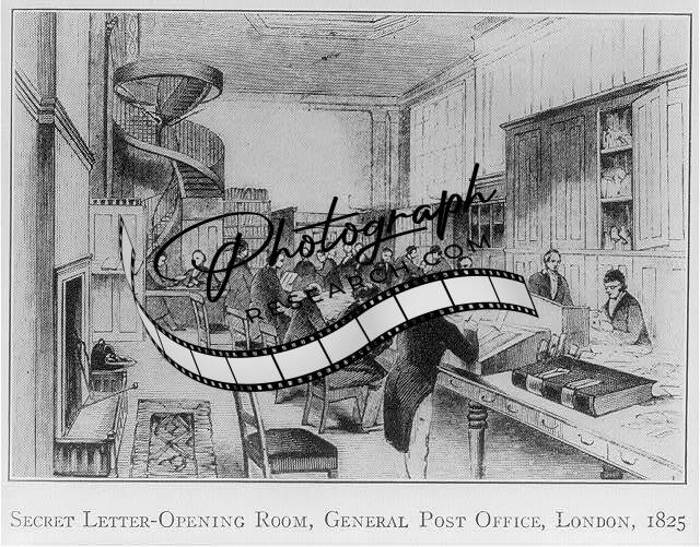 Secret letter-opening room,General Post Office,London,1825,Harlow,Old Post Bags