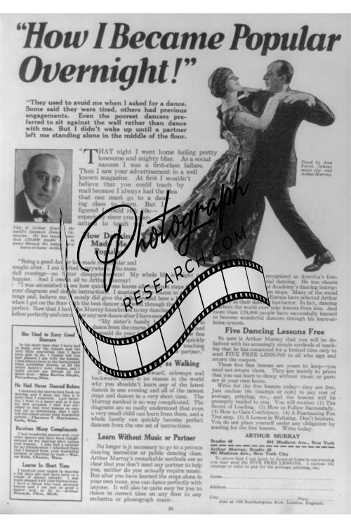 Advertisement,Arthur Murray dance studio showing Ann Forest,Murray dancing,1924