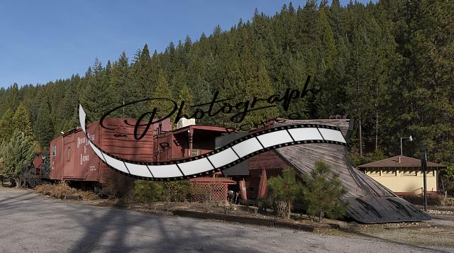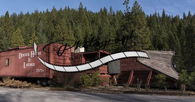 Title: A vintage locomotive plow at Rail Road Park, an unusual motel and resort complex in which guests may opt to stay and sleep in a caboose or other restored, antique railroad car. Dunsmuir, California