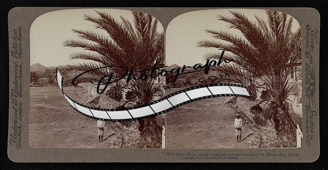 Wild date palm,before a palatial summer residence on Mount Abu,India