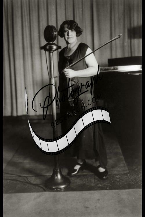 Renee Chemet,French violinist,holding violin,standing at microphone