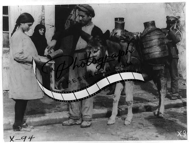 Milkman making the rounds of his customers,Salonika,Greece,Donkey,Milk,1918