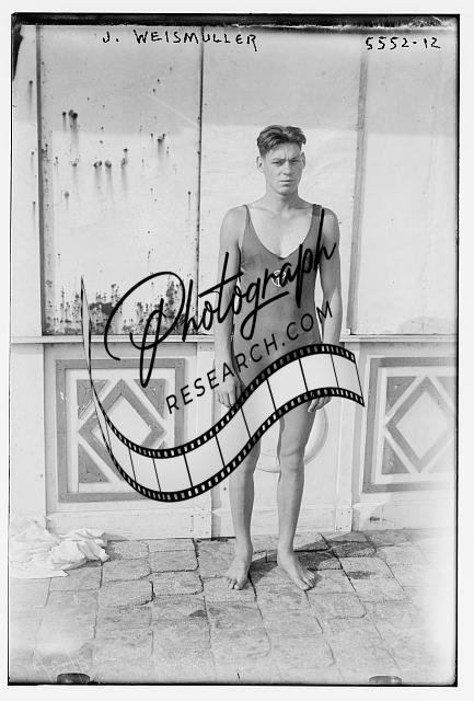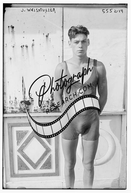 Johnny Weismuller Tarzan,swim champion,bathing suits,athletes,Bain News Service