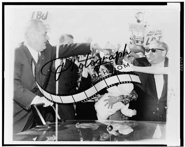 President Lyndon B. Johnson,greet crowd of supporters,Bergen Mall,Elections