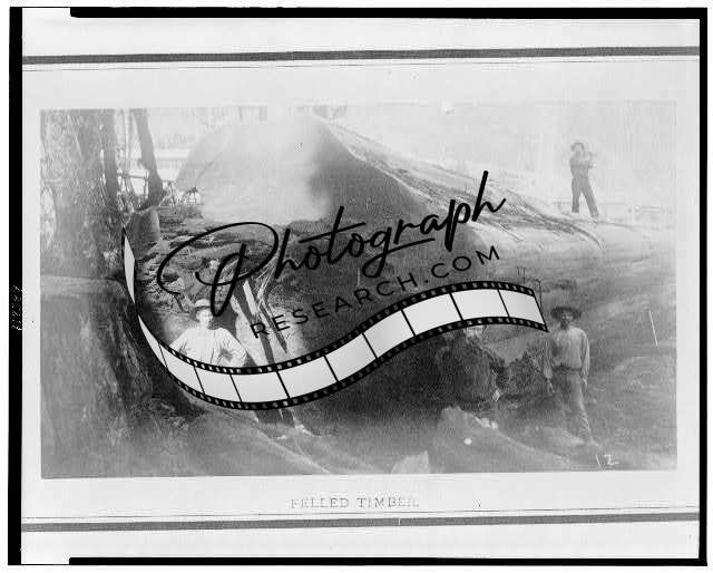 Felled timber,Lumberjacks,Felled Redwood Tree,California,CA,1884,Lumber Industry