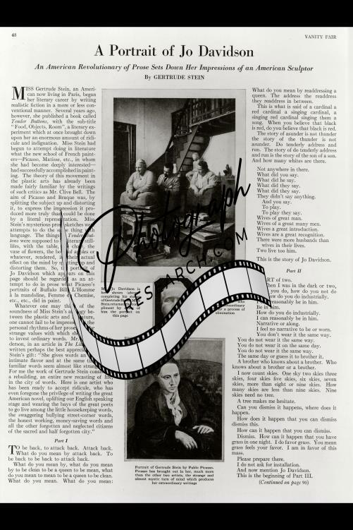 Jo Davidson,Gertrude Stein,Vanity Fair,February 1923,Pablo Picasso,Photo