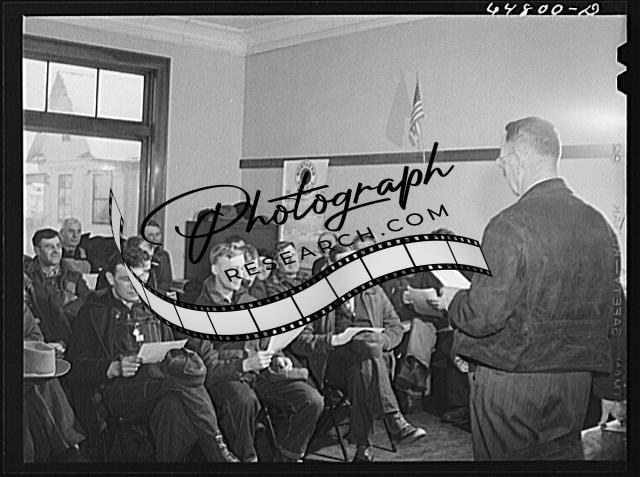 Title: Adams County, North Dakota. Farmers brought their own lunch to an all day Food for Victory meeting. Coffee was served by one of the ladies. The meeting was held in the rural school house