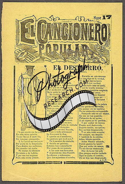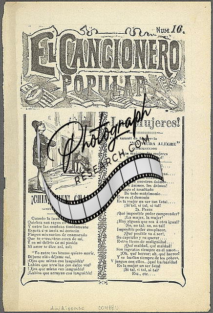 Summary: Broadside has masthead illustration and decorative borders, but no other images. The song 'Adelita' refers to the name of a woman with whom a soldier is in love. He asks her to marry him, to wait for him, to cry for him if he dies in action, and never to forget him. The second song, a waltz, is titled 'When love is born.'