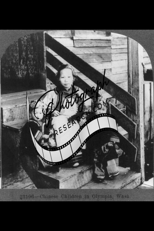 Chinese Children,Olympia,Washington,WA,c1919,Seated on Stairs,Traditional Dress