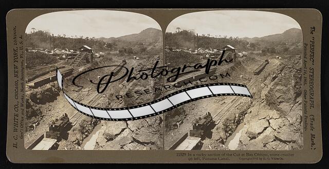 In a rocky section of the cut at Bas Obispo, stone crusher on left, Panama Canal