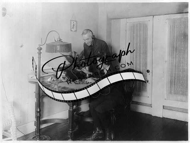Man & boy with radio,Probably in Washington,DC,c1922,lamp,table,doors