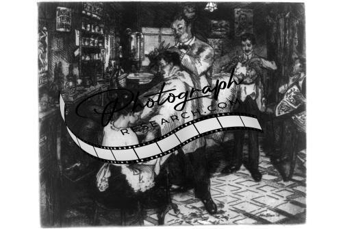 The Barber Shop,men getting shave,haircut,manicure,New York City,NYC,1915