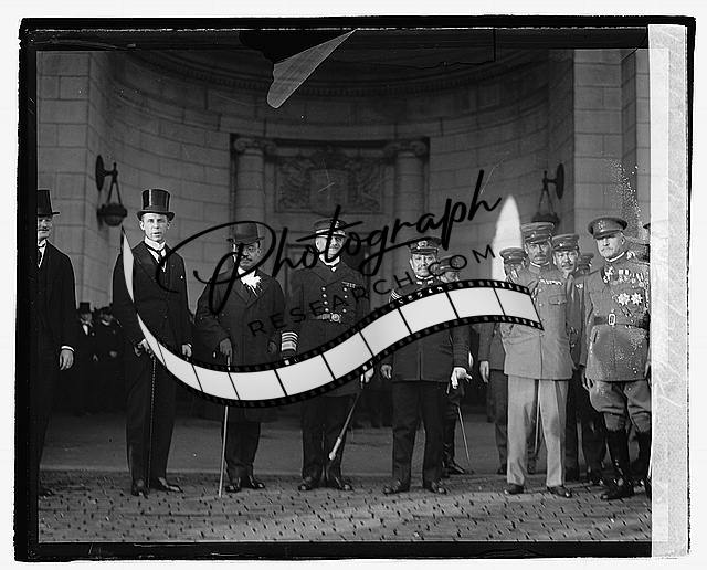 Admiral Kato & Major General K. Tanaka,group saluting outside building,1921,1